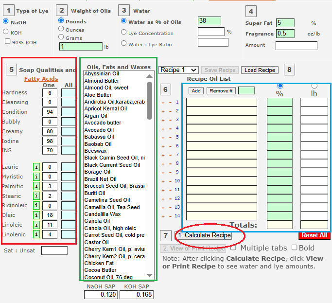 Here’s a simplified tutorial on how to use SoapCalc’s recipe calculator to help you get started.