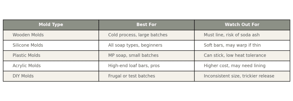 There’s no single “perfect soap mold”—the best one is the one that fits your style, your recipes, and your level of experience.
